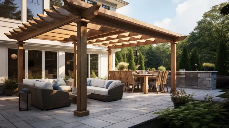 Wooden pergolas are classics that offer warmth and a natural aesthetic. They can be customized easily with different stains or paints to match your home’s style.